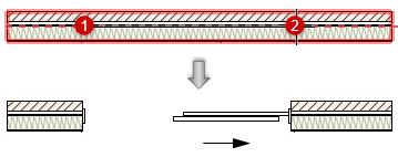 L’emplacement du curseur par rapport à la ligne axiale du mur au moment du deuxième clic détermine le côté du mur vers lequel la porte s’ouvre.