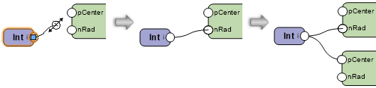 Vous pouvez masquer les ports non utilisés sur le nœud enveloppe. Déroulez le nœud enveloppe ou ouvrez sa fenêtre d’édition, puis utilisez l’outil Point 2D pour placer un point sur chaque port non utilisé que vous souhaitez masquer. Placez le point au centre du cercle du port.