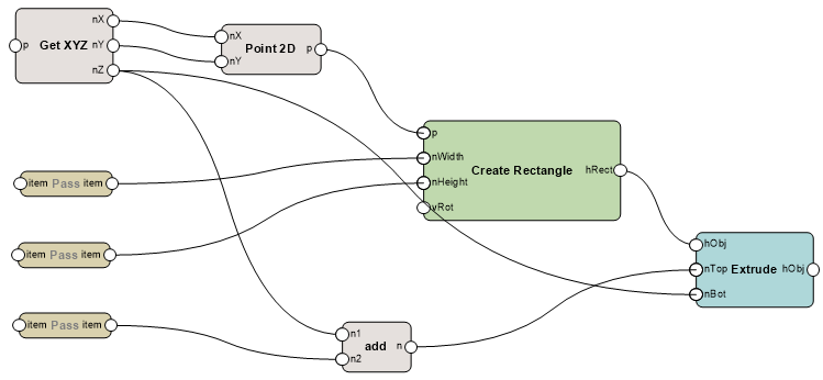 Nœud Add : Il ajoute la sortie du nœud Pass à la valeur Z du nœud Get XYZ pour déterminer le dessus de l’extrusion.