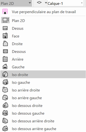 Passez à la vue Plan 2D en la sélectionnant dans la liste Vue active/Vues standard de la Barre d'affichage, en appuyant sur la touche 0 du pavé numérique ou en utilisant le cube de visualisation.