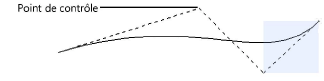 La courbe NURBS est calculée par interpolation entre points de contrôle. Plus le degré de la courbe NURBS est élevé, plus de points de contrôle seront impliqués à l'interpolation.