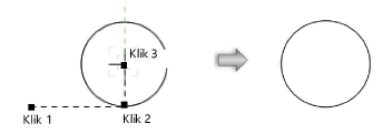 Selecteer deze methode om de grootte van de cirkel te bepalen aan de hand van drie aangeklikte punten. |