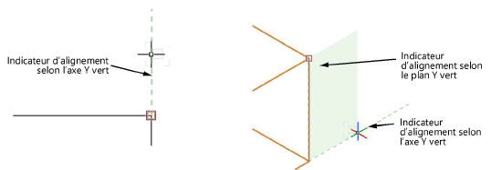 Les indicateurs d’acquisition montrent les points remarquables potentiels à acquérir à proximité du curseur. Ils indiquent que vous pouvez acquérir un point d’attirance, une arête générant une attirance ou un verrou.