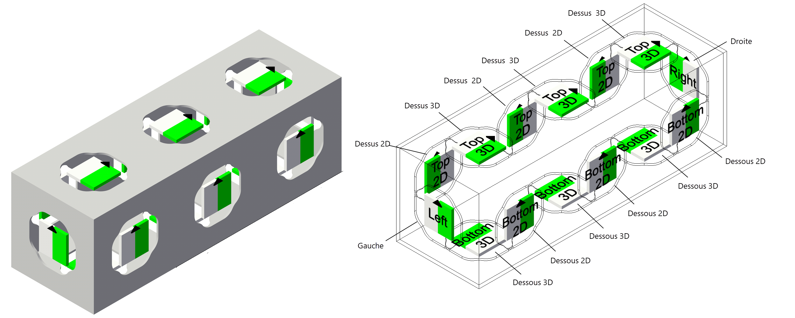 Cochez cette option pour ajouter des angles de rotation pour le pont connecté. Les options sont indiqués par des rectangles noirs sur l’aimant. Les ponts triangulaires ne prennent pas en charge les angles de rotation. Sans : Le pont connecté s’aligne toujours à la flèche de l’aimant.