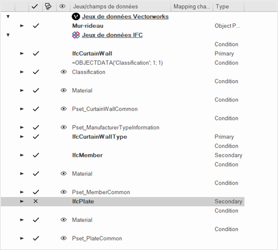 Les conditions vous permettent de gérer des cas plus complexes et de contrôler l’organisation de données IFC de façon plus précise.