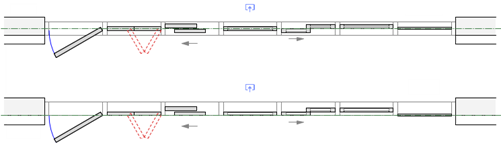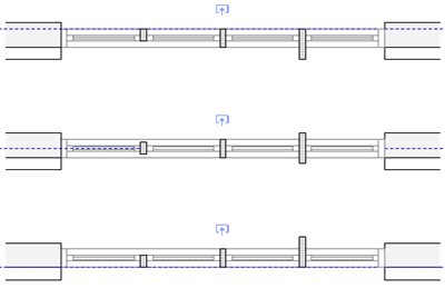 Pour les assemblages qui utilisent des cadres fournis par l'élément, la Référence de décalage élément aligne tous les cadres tels qu'ils sont définis, quelle que soit leur profondeur. Pour les unités ayant des profondeurs de cadre différentes, lorsque le paramètre Insertion relative à est réglé sur la face extérieure ou intérieure du cadre, les éléments sont alignés sur le bord le plus extérieur ou le plus intérieur du cadre ayant la plus grande profondeur. De même, les meneaux dans les assemblages avec des cadres fournis par les éléments et un Emplacement dans l’assemblage de la face extérieure ou intérieure du cadre s'alignent sur le cadre le plus extérieur ou le plus intérieur de tous les cadres de l'assemblage. Créez des décalages si nécessaire pour un alignement correct.