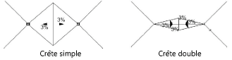 Sélectionnez cette option pour créer une crête double et définir la pente des faces ainsi que l’angle d’ouverture des différentes faces. L'angle doit être compris entre 0° et 45°. |