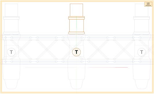 Dans le mode d’édition des accessoires, l’outil possède différents modes et des flèches qui vous permettent de parcourir une sélection de projecteurs. Utilisez les flèches pour localiser le projecteur que vous souhaitez éditer. L’origine du dessin et le centre du plan de travail correspondent au point d’insertion du projecteur affiché.