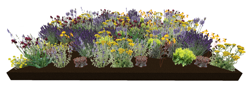 Ajoutons une surface plantée composée d'un mélange de plantes comme des arbustes, des petits arbres, des vivaces ou des graminées, en utilisant l'une des méthodes de création de surfaces plantées.