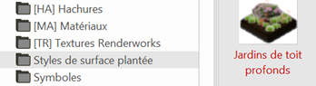 . Dans le Sélecteur de ressources du Style de surface plantée de la Barre des modes, choisissez « Jardins de toiture » dans le dossier « Surface plantée (styles) ».