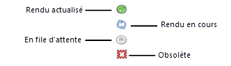 Lorsque les viewports et les rendus partiels sont en cours de rendu, différentes icônes s'affichent également dans le coin inférieur droit de chaque viewport ou rendu partiel pour indiquer son état individuel :