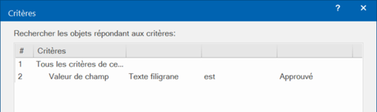 Le Gestionnaire de critères des cartouches permet de créer des critères afin de sélectionner des cadres cartouches spécifiques pour les tableaux. Créez autant de critères que nécessaire, ou importez-les d’un autre fichier.