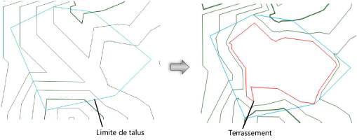 Créer un terrassement plat d'après une limite de talus
