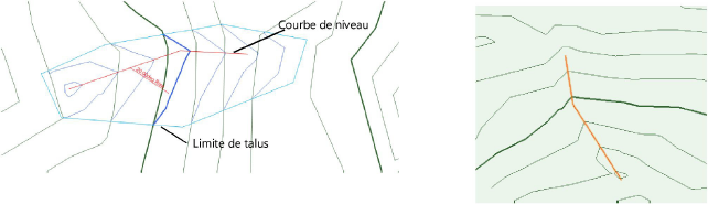 La méthode recommandée pour la création et l’édition et contours est d’Éditer les courbes de niveau d’un modèle de terrain.