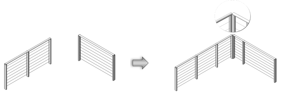 Sélectionnez ce mode pour créer un nouveau segment de rambarde, si nécessaire, pour joindre les deux objets.