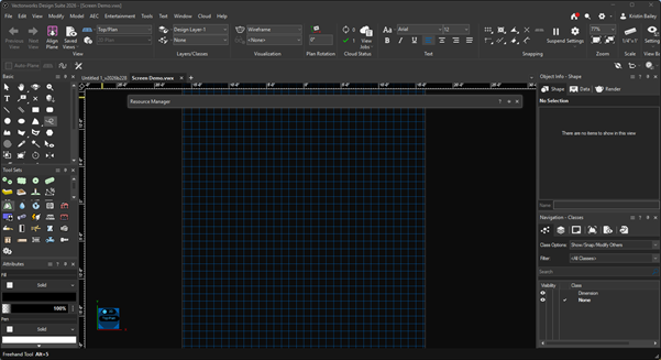 Configuration Vectorworks Design Suite sur Windows - Mode Sombre (option Utiliser un fond sombre cochée)