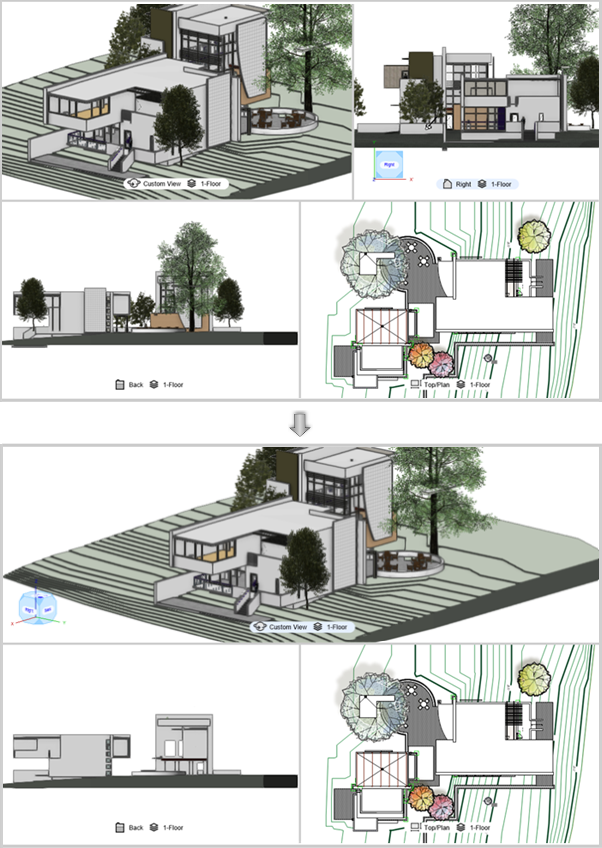 Vous pouvez également créer une fenêtre flottante à partir d’une vue enregistrée dans la palette Explorateur (module d'extension Vectorworks requis). Dans l’onglet « Vues enregistrées », cliquez avec le bouton droit de la souris sur le nom de la vue et sélectionnez Activer dans une nouvelle fenêtre dans le menu contextuel.