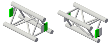 Allows additional roll angles for the connected truss. The options are indicated by black rectangles on the magnet. Triangle trusses do not support roll angles. None: The connected truss will always align with the magnet arrow.