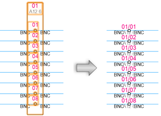 Typically, ConnectCAD represents panels (jackfields, terminal panels, connector panels, etc.) as a separate connector device, each with the same name and one socket. This allows you to place these devices in different locations on the schematic to illustrate the signal flow. However, it can be convenient to combine these devices into a single device with multiple sockets. These commands switch between single and multiple device representations.