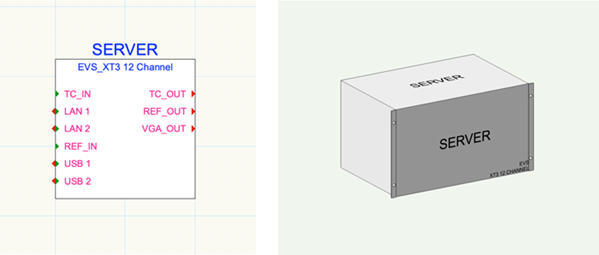 Devices are groups of sockets with a label and graphics to depict the device and its function. Connections among devices depict the direction and type of signal flow. Vectorworks comes with thousands of manufacturer’s devices separated into usage categories. You can customize the devices to create your own library of frequently used devices, or create completely custom devices from scratch.