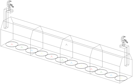 The container symbol is created by aligning the individual cell symbols to form the multi-cell device. Once the cells are correctly aligned, 3D loci are added to define the light emitters and the rotation axis of the device, and the necessary record data is attached.