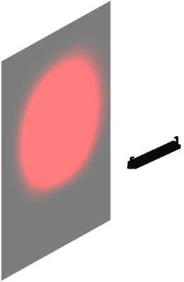 This four-cell strip light contains 12 light emitters. Each emitter has a color-coded 3D locus point. The red locus points are assigned a Light Emitter value of 1. These three emitters will be controlled by cell#1 to shine red light.