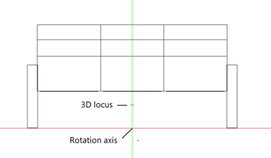 The cell rotates about the yoke. If the cell you're creating is not yoked, use a guide line to identify where the rotation point is located on a yoked cell; note the height of this point within the cell. Then, in the unyoked cell, place the 3D locus at the same height and center it between the left and right sides of the cell.