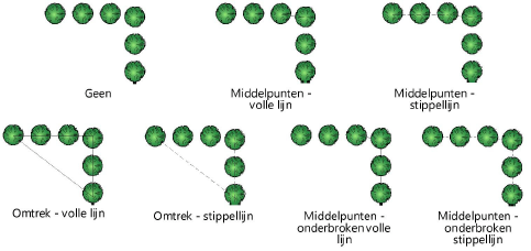 Verandert voor meerdere plantplaatsingen de weergave van de grens of centrale polylijn die de vorm van de plantengroep bepaalt.