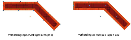 Als je een bestaand verhardingsoppervlak omzet naar een verharding als een pad of omgekeerd, dan verandert enkel het pad van het object. De uiterlijke kenmerken ervan blijven behouden. Je kunt de configuratie maar één keer betrouwbaar converteren; herhaaldelijk wisselen kan het object beschadigen.