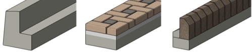 Enkele boorden kunnen volledig bestaan uit extrusies, volledig uit 3D symbolen, of uit een combinatie van de twee. Vaak wordt een symbool gebruikt voor het zichtbare deel van de boord, maar worden de fundering, het holle profiel en het loopvlak gemaakt met extrusies. De extrusies zijn in wezen extrusies langs een pad gebaseerd op profielvormen; ze kunnen elke vorm volgen die het boordpad aanneemt.