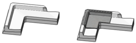 Deze boord met goot is volledig gemaakt van extrusie. Links staat de standaard verstekhoek en rechts is een hoeksymbool toegepast.