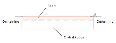 In sommige situaties moeten geavanceerde gebruikers het omtrekkader van een paal of poort misschien bewerken om te zorgen voor correcte verbindingen tussen omheiningonderdelen. Bijvoorbeeld, je wilt misschien dat de poort aansluit op de voorzijde van de omheiningslijn, of dat er rekening wordt gehouden met een schuifrail voor een opritpoort.