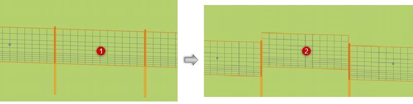 Bewerkt het polylijn pad; invullingen en palen worden automatisch toegevoegd of verwijderd als je de lengte van het pad verandert |