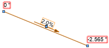 Eenmaal aangemaakt, heeft elk grafisch element van het hellingsobject zijn eigen handgreep. Verplaats een handgreep om de positie van de tekst en aanduiding aan te passen.