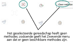 Het geselecteerde gereedschap heeft geen methodes; zodoende geeft het Zwevende menu aan dat er geen beschikbare methodes zijn.