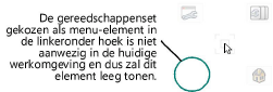 De gereedschappenset gekozen als menu-element in de linkeronder hoek is niet aanwezig in de huidige werkomgeving en dus zal dit element leeg tonen.