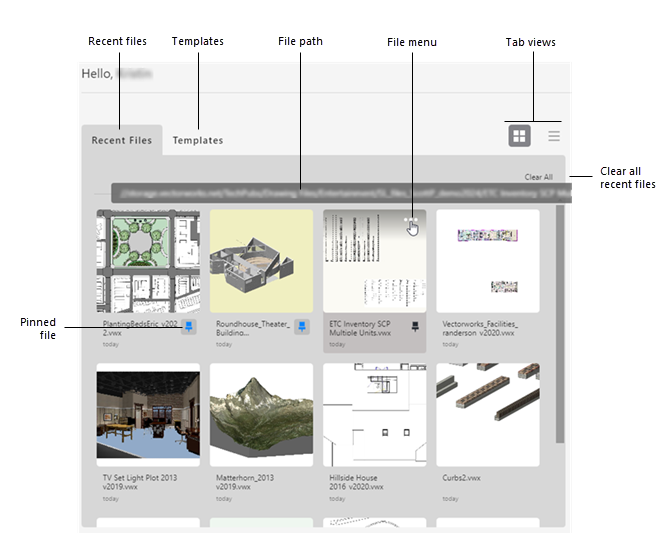 Open nieuwe of bestaande bestanden, inclusief recente bestanden en sjablonen Krijg toegang tot nieuwe demonstratie videos en voorbeeldbestanden op Vectorworks University |