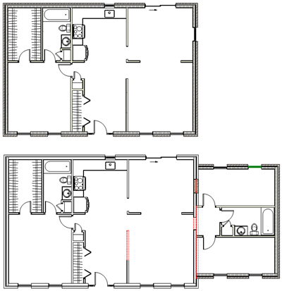 De faseringsfunctie behoudt een logische volgorde van bewerkingen (een die kan worden voltooid met fysieke objecten tijdens het bouwen) en waarschuwt je als je een invoeging probeert te wijzigen op een manier die de faseringsgegevens voor een andere invoeging ongeldig maakt. Als je bijvoorbeeld een eerdere invoeging van een object dat in een latere fase wordt hergebruikt, probeert te slopen in plaats van te verwijderen, krijg je een waarschuwing met opties om het conflict op te lossen. Zo kunnen gehoste objecten (zoals ramen en deuren) ook niet worden aangemaakt voor of verwijderd na hun hostingobjecten (zoals muren).