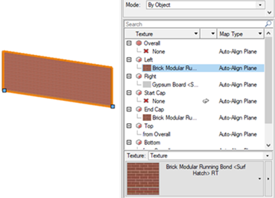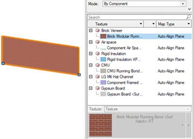 Texturen die zijn ingesteld in de Textuurbrowser op het tabblad Renderen overschrijven de texturen die zijn ingesteld tijdens het maken van het object. De component-/onderdeeltexturen van zowel muren met als zonder stijl, platen en daken kunnen worden ingesteld en bewerkt in de Textuurbrowser. De component-/onderdeeltexturen van andere objecttypes, zoals verhardingen en landschapszones, kunnen daar worden bekeken, maar kunnen alleen worden ingesteld of bewerkt als de textuur per invoeging is ingesteld.