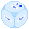 De aanzichtkubus wordt linksonder in het tekengebied weergegeven voor ontwerplagen. Hiermee kun je snel wisselen tussen standaardaanzichten door te klikken op vlakken en/of hoeken van de kubus. Zie De aanzichtkubus voor meer informatie.