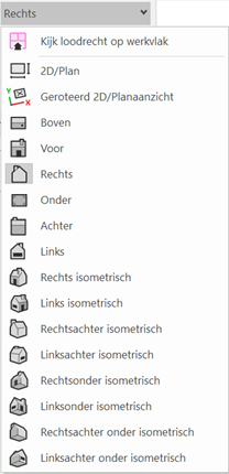 De weergavebalk geeft de huidige weergave aan en biedt snelle toegang tot de standaard weergave commando's. De optie Kijk loodrecht op werkvlak is ook beschikbaar om de weergave loodrecht op het bewerkvlak uit te lijnen.