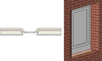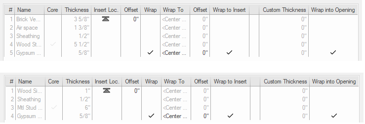 De component dagkanten die hierboven gedefinieerd worden zijn maken deel uit van de Raam muuraansluiting van twee verschillende muren. Een invoeging die ingesteld is om de Raam muuransluiting te gebruiken koppelt automatisch met de muuraansluiting en de gepaste instellingen van elk van deze muren bij en na invoeging.