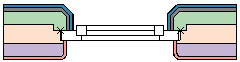 De blauwe en grijze componenten aan de buitenzijde van de muur, en de rode component aan de binnenzijde zijn allemaal ingesteld op Tot aan ingevoegd object. De groene component loopt door tot op een bepaalde afstand van de paarse component en heeft een dikte op maat. Er zijn geen componenten ingesteld op Plooi om in dagkant.