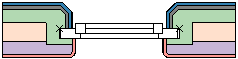 De blauwe, grijze en groene componenten aan de buitenzijde, en de rode component aan de binnenzijde zijn allemaal ingesteld op Tot aan ingevoegd object. De grijze buitencomponent is ook ingesteld op Plooi om in dagkant; de blauwe component verder van de kern moet ook in de opening omplooien samen met de grijze.