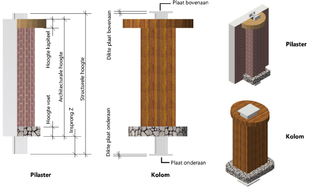 Parameters uitgebreide gereedschappen Kolom en Pilaster