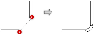 Met behulp van het gereedschap Afronden, dat je in de Basisgereedschappen vindt, kan je twee muursegmenten met elkaar verbinden door middel van een Curve muur. Zie Afronden (gereedschap).