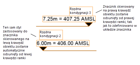 Ten parametr pozwala zachować odpowiedni odstęp między zaznaczonym obiektem a lewą/prawą krawędzią ramki (zakładając, że znacznik będzie zwrócony w kierunku prawej krawędzi obiektu). Jeżeli znacznik będzie zorientowany na lewą krawędź obiektu na rysunku, odstęp zostanie również automatycznie „odwrócony”.