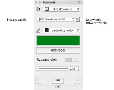 Kliknij ikonę ustawień odwzorowania [kreskowania/motywu] w palecie Atrybuty.