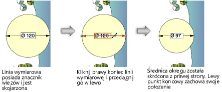Ręczna modyfikacja długości linii wymiarowej |
