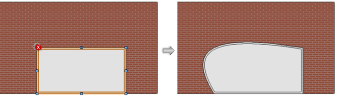 While assemblies can be reshaped using the same Selection tool techniques as a door or window, assemblies can be based on closed 2D shapes that can be manipulated using the Reshape tool.